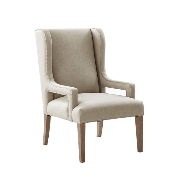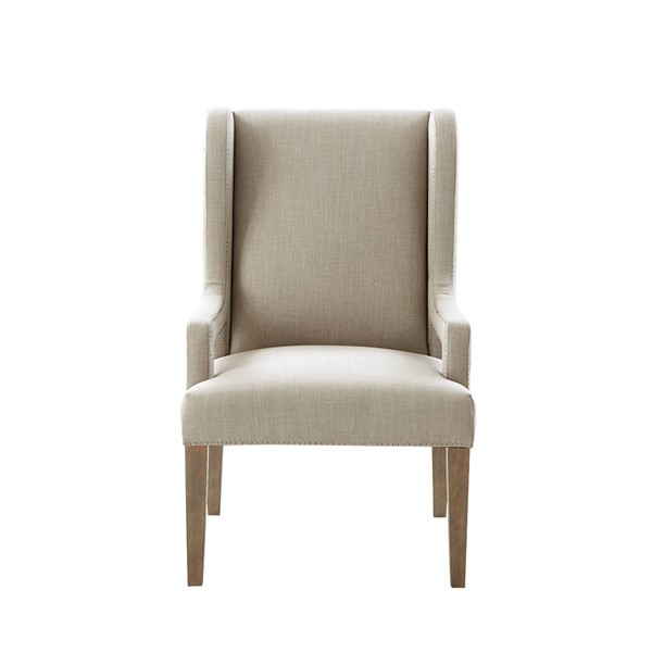 The Madison Park Whinney Accent Chair offers sleek and sophisticated update for your living space. Subtle and elegant curves on the high back create a simple yet stunning look. The light grey upholstery is beautifully complemented by the reclaimed grey wood finish on the solid wood legs, while pewter nail heads complete the design. Perfect for your living room, this accent chair adds a revitalizing touch to your decor. Leg assembly is required and no tools are needed.