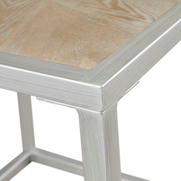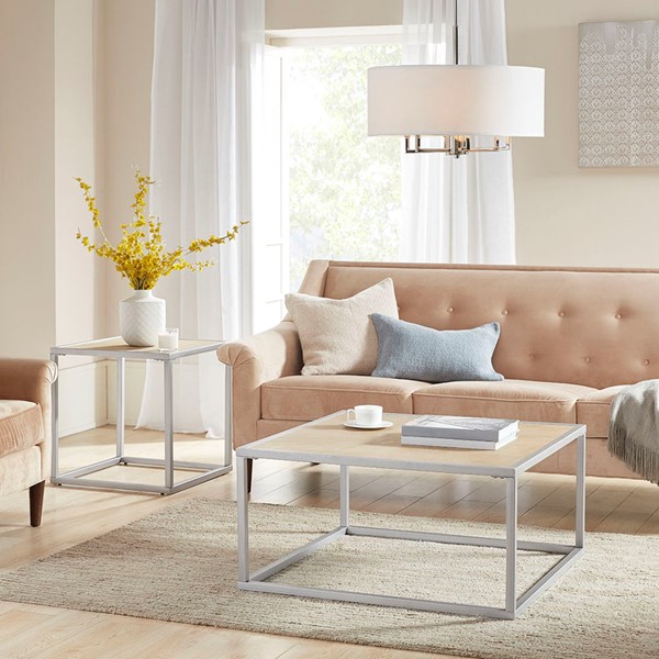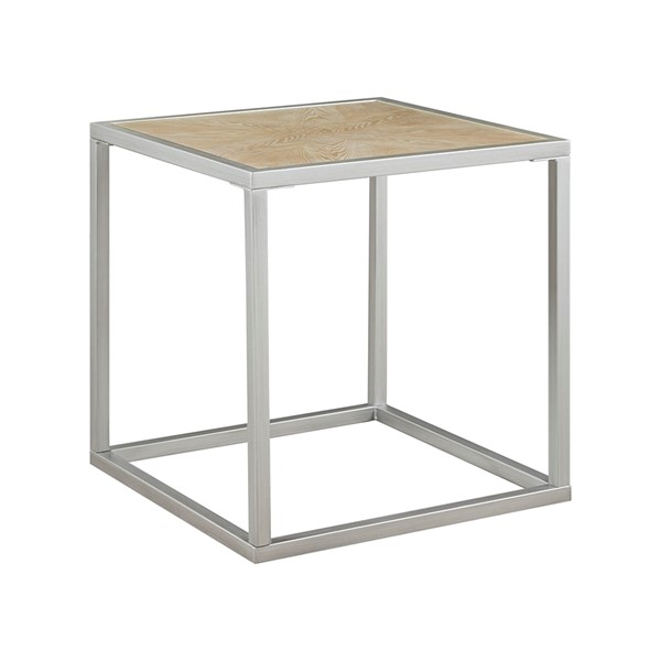 Complete your living space with the simple and clean allure of the Madison Park Willow End Table. This square table features a solid veneer top with a natural wood finish to give it a warm and welcoming look. The antique brushed silver metal base complements the table top to complete the transitional design. Elevate your home decor by incorporating this end table into your living room. Assembly is required and tools are included.