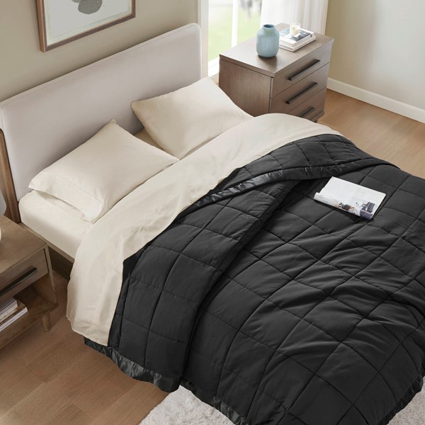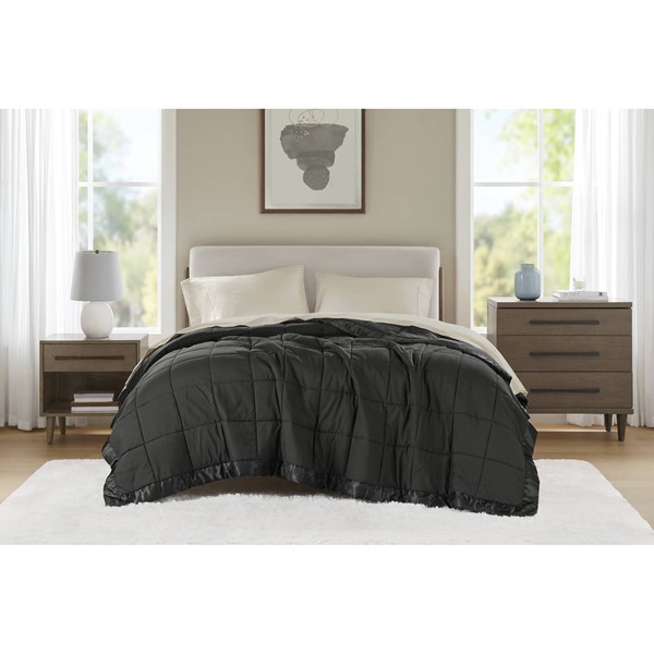 This soft and extra comfy blanket is made of polyester that’s lightweight but warm. The satin trim adds a silky smooth luxury element that feels great on your skin. It features a 3M Scotchgard Moisture Management Treatment that wicks away moisture while helping release stains. Machine washable for easy care and perfect for all seasons. This hypoallergenic blanket is also OEKO-TEX certified, meaning it does not contain any harmful substances or chemicals, ensuring quality comfort and wellness.