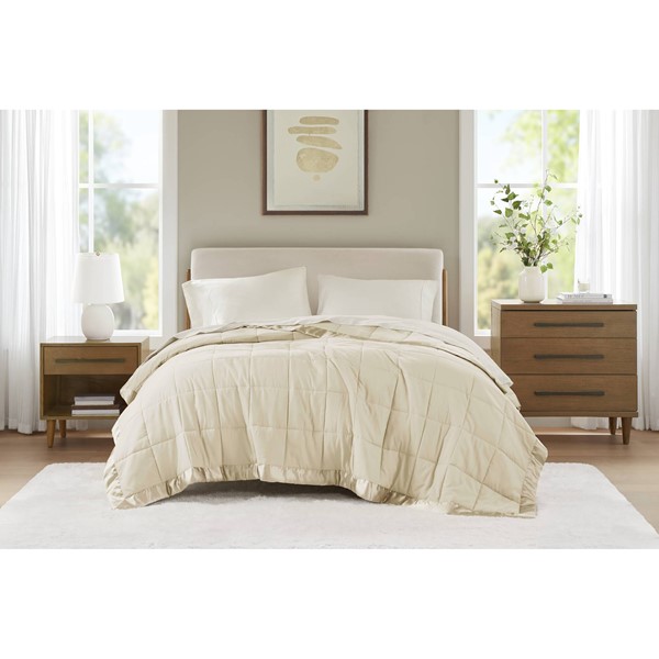 * Classic box quilting with 3-inch satin trim