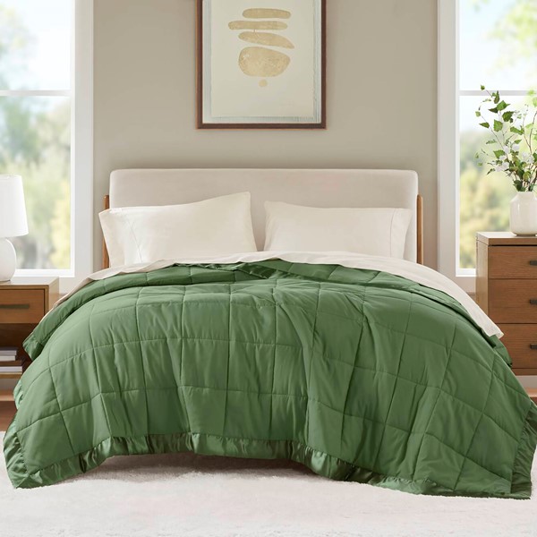 This soft and extra comfy blanket is made of polyester that’s lightweight but warm. The satin trim adds a silky smooth luxury element that feels great on your skin. It features a 3M Scotchgard Moisture Management Treatment that wicks away moisture while helping release stains. Machine washable for easy care and perfect for all seasons. This hypoallergenic blanket is also OEKO-TEX certified, meaning it does not contain any harmful substances or chemicals, ensuring quality comfort and wellness.