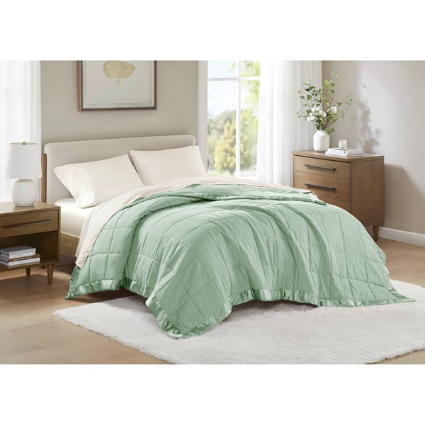 This soft and extra comfy blanket is made of polyester that’s lightweight but warm. The satin trim adds a silky smooth luxury element that feels great on your skin. It features a 3M Scotchgard Moisture Management Treatment that wicks away moisture while helping release stains. Machine washable for easy care and perfect for all seasons. This hypoallergenic blanket is also OEKO-TEX certified, meaning it does not contain any harmful substances or chemicals, ensuring quality comfort and wellness.