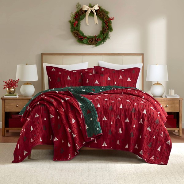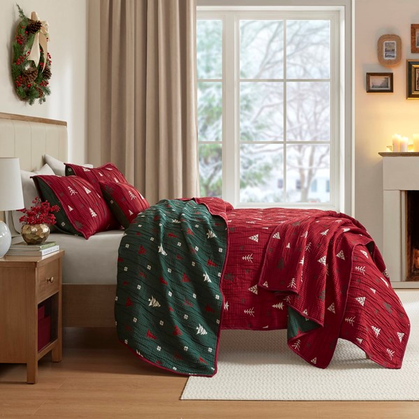 * Reversible Versatility – Enjoy two stylish looks with one reversible coverlet, featuring vibrant red on one side and classic green on the other, effortlessly adapting to any occasion or season.