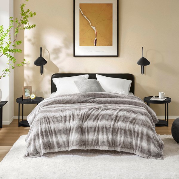 Madison Park Zuri Faux Fur Blanket in Grey, 108×90″ MP51-8534