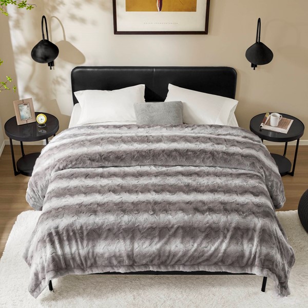 Madison Park Zuri Faux Fur Blanket in Grey, 66×90″ MP51-8532