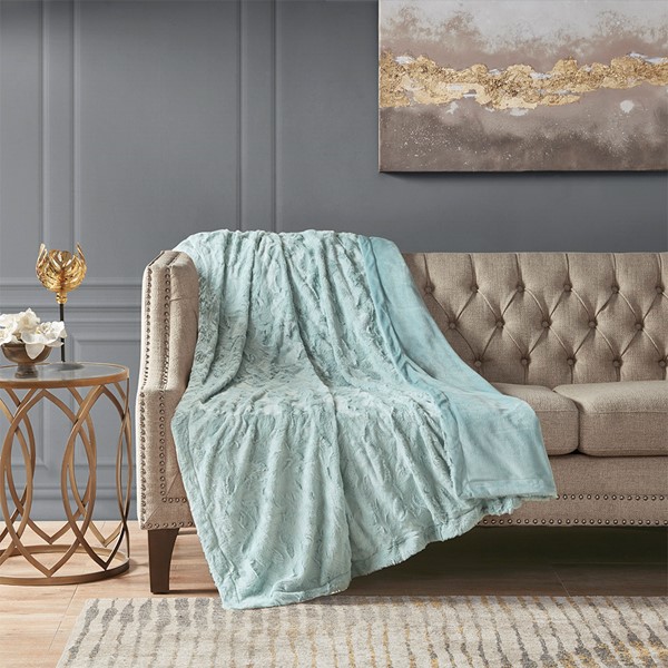 The Madison Park Zuri oversized throw features a luxuriously soft faux fur and reverses to a solid faux mink. This faux fur throw is the perfect modern update and adds a glamorous accent to your home. This throw is machine washable for easy care and OEKO-TEX certified, meaning it does not contain any harmful substances or chemicals to ensure quality comfort and wellness. Items in the set may come in a rolled or compressed packaging, which will need to be fluffed up or steam ironed before use to remove wrinkles.