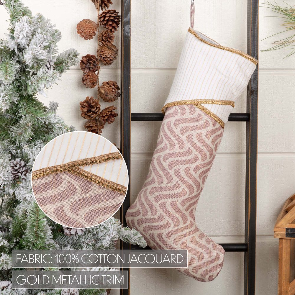 Stuff this stylish farmhouse Christmas stocking for your friends and family. The double-layered white cotton cuff is ideal for that home country style. In addition to the mauve purple and antique white jacquard pattern, the Magdalene stockings feature metallic gold accents for an added touch of elegance.