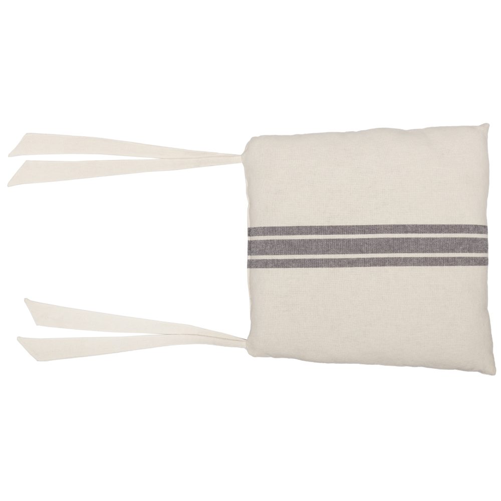 - Textured solid creme woven cotton fabric; Single charcoal grey grainsack stripe woven vertically down center; Turned edge seam; Reverses to same as front; Features two 15″ ties for fastening to chair; Single fabric: Machine stitched