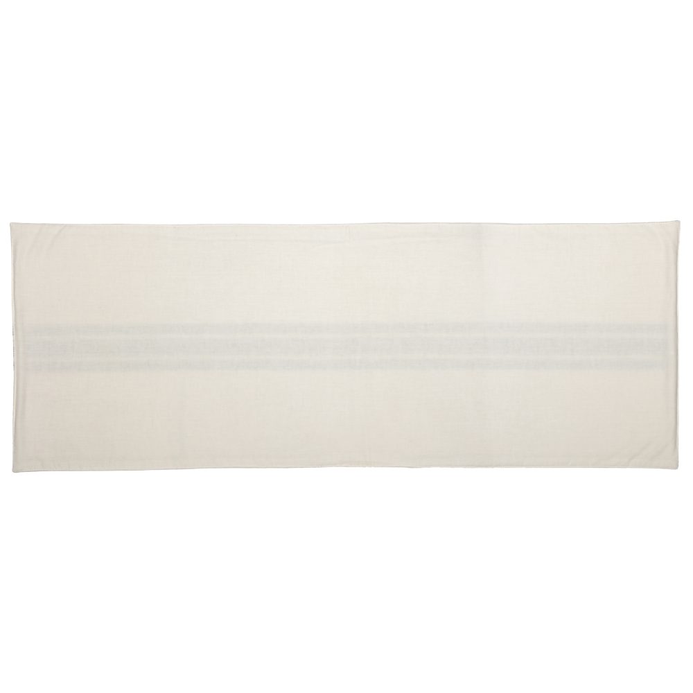 - Textured solid creme woven cotton fabric; Single charcoal grey grain sack stripe woven horizontally across center.