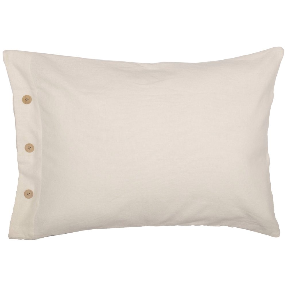 • On-point block hand-quilting on textured solid creme woven cotton fabric; Accented with charcoal grey striped applique on opening side; Turned edge seam; Reverses to textured solid creme woven cotton fabric with button detail on opening; Features 3 wooden button closures on end plus 1 spare hidden button with 3″ overlap to conceal pillow insert; Assorted fabrics: Hand-quilted, Machine stitched