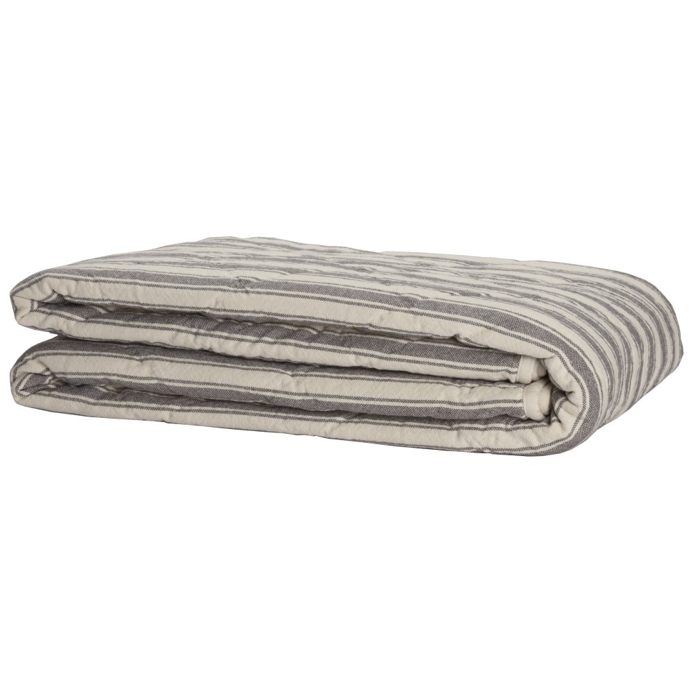 - On-point block hand-quilting on textured charcoal grey ticking stripe fabric; Charcoal grey ticking stripe is woven into classic creme base; Straight edge with .5″ solid creme woven cotton fabric; Reverses to solid creme woven cotton fabric; Assorted fabrics: Hand-quilted, Machine stitched