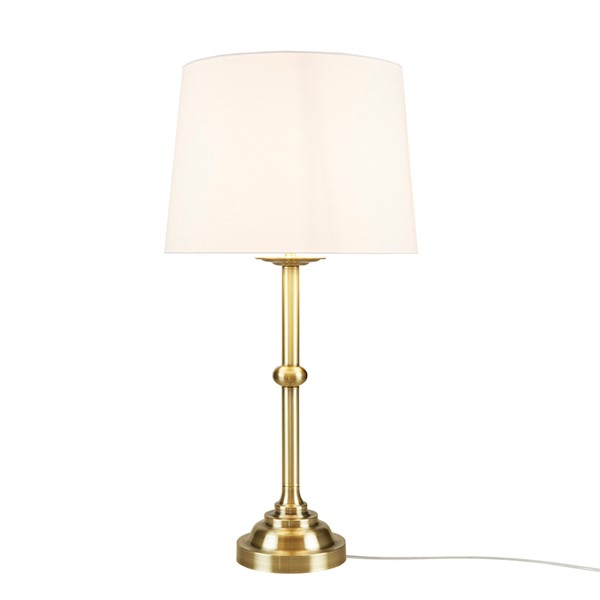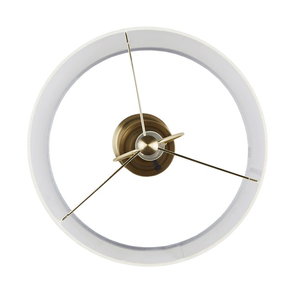 * Timeless design in an antique brass finish and paired with an empire shade in off-white color