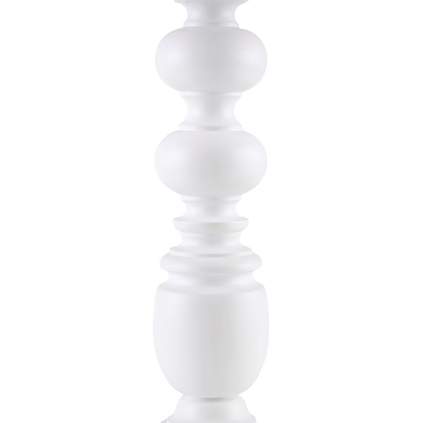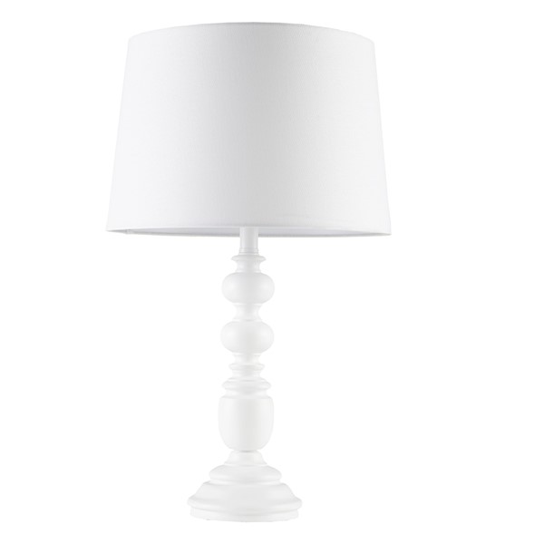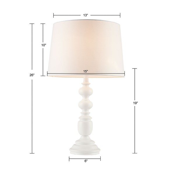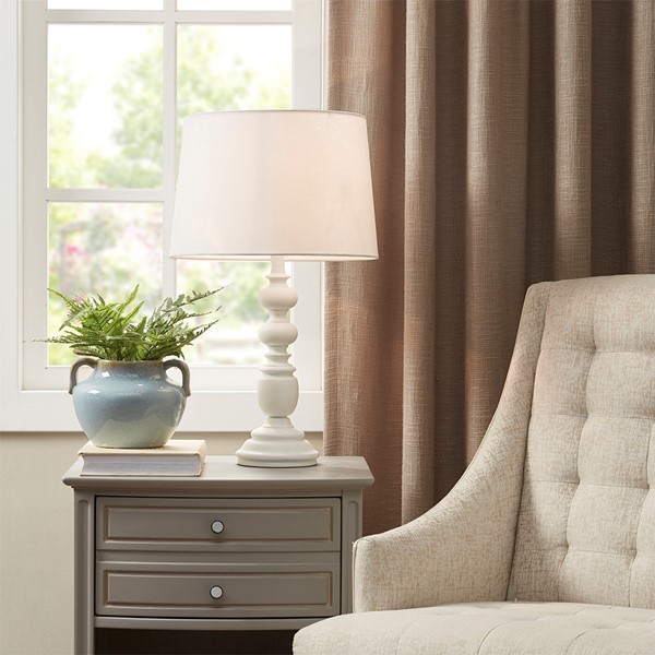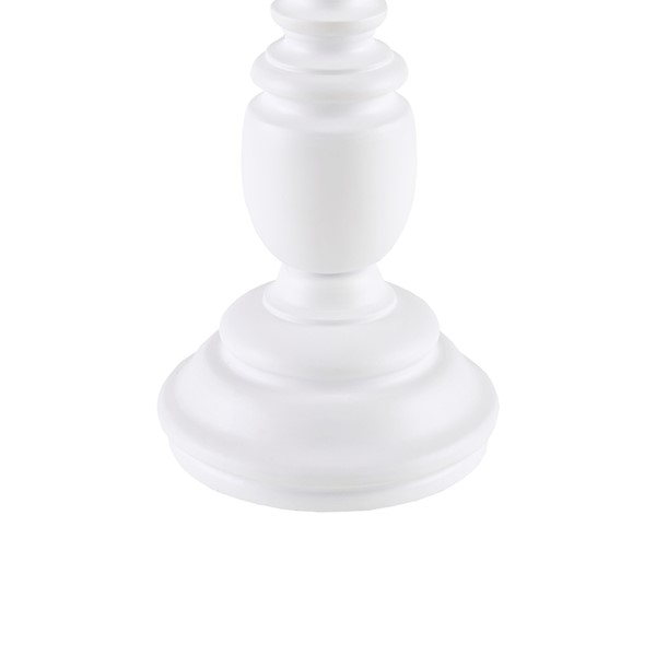 The Martha Stewart Astoria Resin Buffet Table Lamp offers a chic traditional update to your living room or bedroom. This table lamp features a resin frame in a matte white finish with a candle stick design to create a refined farmhouse look. The tapered lamp shade is made from linen to softly filter the light into your space and is not adjustable. This farmhouse table lamp also uses a rotary switch to find the right light setting and adds a subtle charm to your home decor. 1 Type-a light bulb is needed. Spot clean only. Comes with a 2-year warranty.