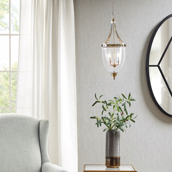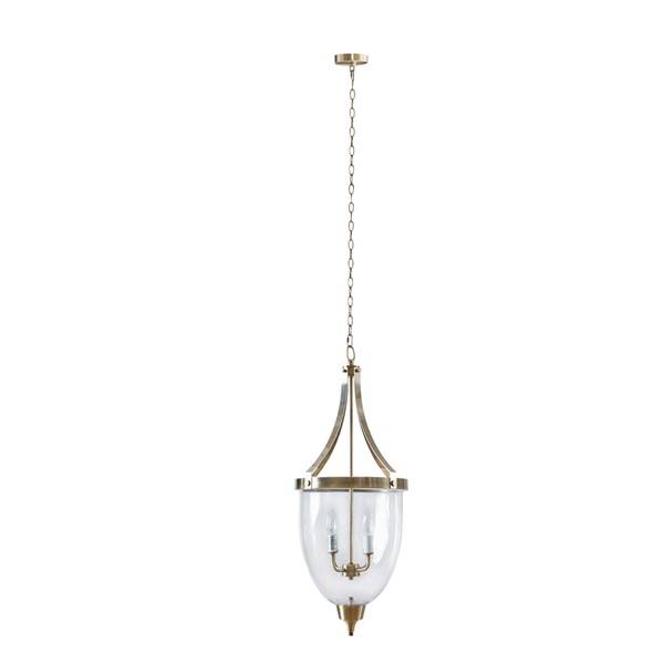 Inspired by Martha Stewart’s Bedford home, the Camden 4-Light Glass Bowl Shaped Chandelier brings a timeless touch to your home. Featuring a quality glass dome shade, this chandelier flaunts an antique brass finish for a beautiful transitional look. The 4 candle-style lights brightly illuminate your dining room, entryway, or living room, while the adjustable chain with a max height of 36 inches allows you to find the perfect hanging height. Hardwire for indoor use only, this traditional chandelier is compatible with a sloped ceiling. Mounting hardware is included and professional installation is recommended. Dimmable with dimmer switch and bulb (not included). Requires 4 Type B light bulbs (not included).