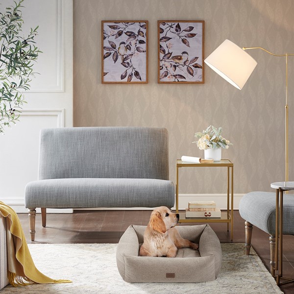 The Martha Stewart Charlie 4-Sided Bolster Pet Bed with Removable Cover offers a supportive and comfortable spot for your pet to curl up and sleep. This tan dog bed features four soft walls with plush poly filling that shelter your pup in warmth and security. A non-skid, non-slip bottom helps prevent the pet bed from sliding, while the soft removable cover makes cleaning a breeze. Tested for durability and quality, this orthopedic dog bed provides your pup with pure comfort for a restful sleep. Comes with a 1-Year Limited Warranty.