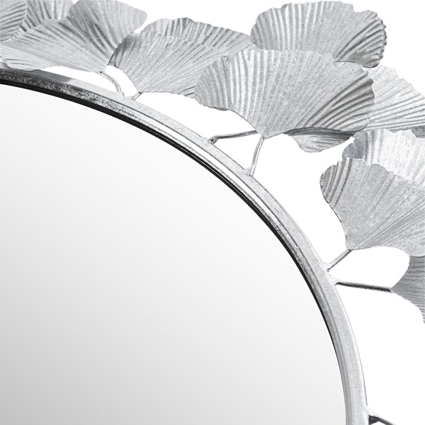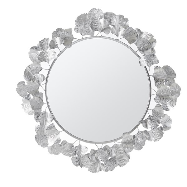 * Round wall mirror features a sculptural frame with gingko leaf design