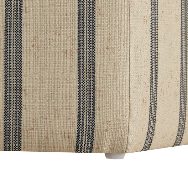 Created exclusively for the Martha Stewart Bedford furniture collection that embodies country farmhouse living, complete your living room decor with the Ellen Accent Ottoman. This hexagonal ottoman is upholstered in a natural-hued printed stripe fabric for a unique transitional look. The solid and plywood frame provides strong and sturdy support. At her country farmhouse, Martha enjoys bringing the outdoors in. This functional and practical lifestyle is evidenced in her thoughtfully appointed decor which embraces a neutral color palette that acts as a perfect backdrop to four seasons of color. Fully assembled.