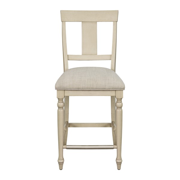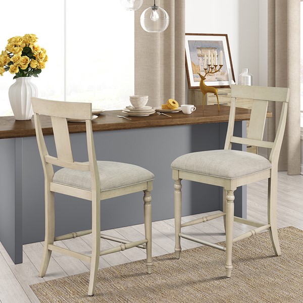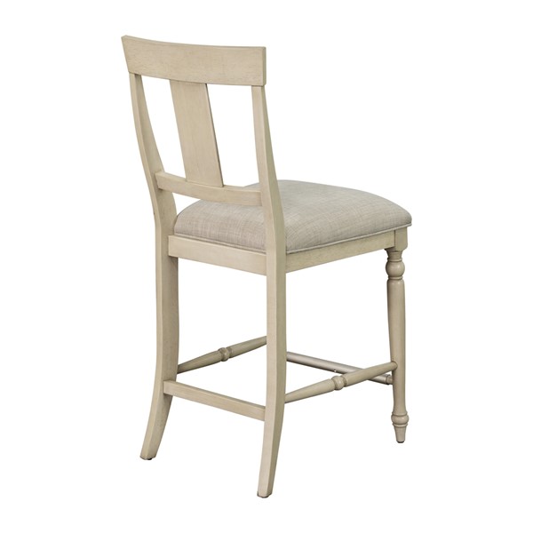 The Martha Stewart Fiona Counter Stool offers a classic farmhouse update to your dining room decor. This counter stool features an upholstered seat and solid wood frame, in a rustic whitewash finish, to create a warm and welcoming allure. The solid wood legs flaunt turned details to add an elegant touch to the design, while a silver metal kick plate helps protect against every day wear and tear. With its simple and refined look, this farmhouse counter stool easily elevates your dining space. Leg assembly is required and tools are included.