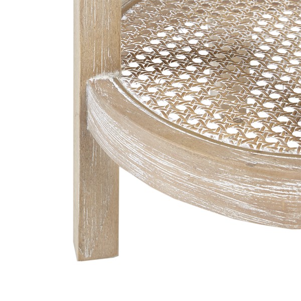 Created exclusively for the Martha Stewart Bedford furniture collection that embodies country farmhouse living, the Harley Accent Table provides a simple and charming addition to your home decor. This round accent table features Ash veneer table top and lower rattan cane shelf creating a unique design. The diameter of this table is 15 inches and the height is 28 inches. A reclaimed wheat finish on the wood frame and legs gives this accent table a natural allure that complements most decors. This functional and practical lifestyle is evidenced in her thoughtfully appointed decor which embraces a neutral color palette that acts as a perfect backdrop to four seasons of color. Assembly required.