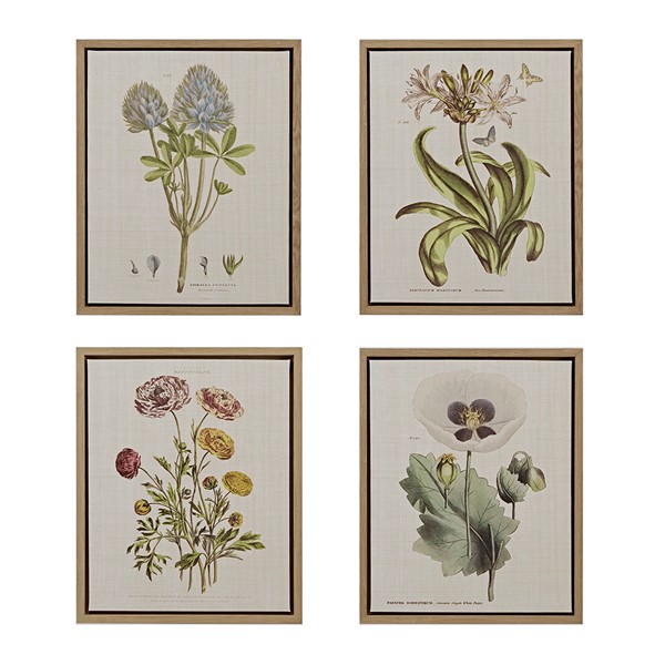 Bring the timeless charm of nature into your home with the Herbal Botany 4-Piece Wall Art Set. Featuring delicate botanical illustrations printed on high-quality linen canvas, this elegant set evokes the beauty of vintage botanical prints. The wood-tone frames add a rustic yet refined touch, making it a stunning addition to any room. Designed for versatility, each panel includes two D-ring hangers for effortless vertical hanging. Arrange the pieces together for a gallery-inspired look or display them separately to spread natural beauty throughout your space. Elevate your decor with the sophisticated charm of the Herbal Botany Wall Art Set — where nature’s beauty meets timeless design.