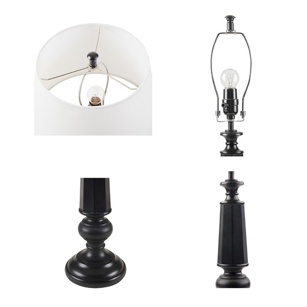 * Classic table lamp features a sculptural pedestal design in a high-gloss black finish