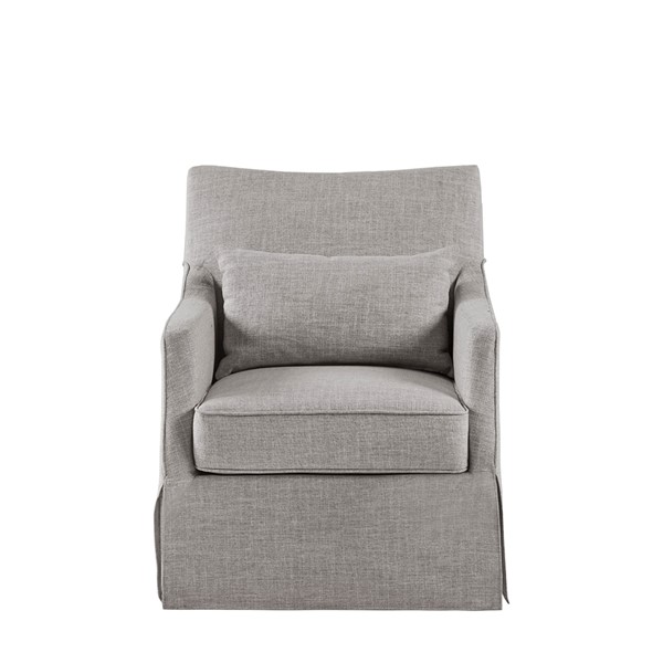 Inspired by Martha Stewart’s farm in Bedford, NY, the Martha Stewart London Swivel Chair blends traditional farmhouse armchair charm with modern lounge chair versatility. This elegant accent chair features linen-like woven and durable upholstery, adding a fresh touch to any living room, bedroom, home office and more. A classic skirted bottom hides a 360-degree swivel base, allowing smooth and quiet rotation. Designed for comfort, this armchair includes a loose seat cushion and a lumbar back support pillow with plush foam padding. Quality construction with sinuous springs and elastic webbing ensures durability. Elevate your space with the Martha Stewart London Swivel Chair today!