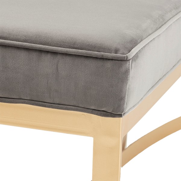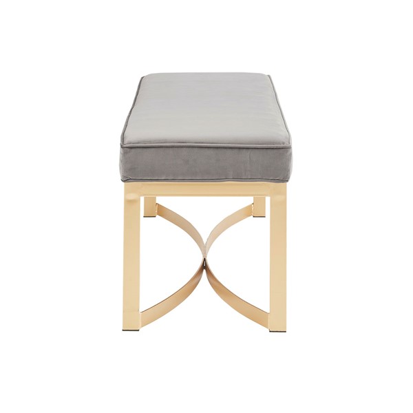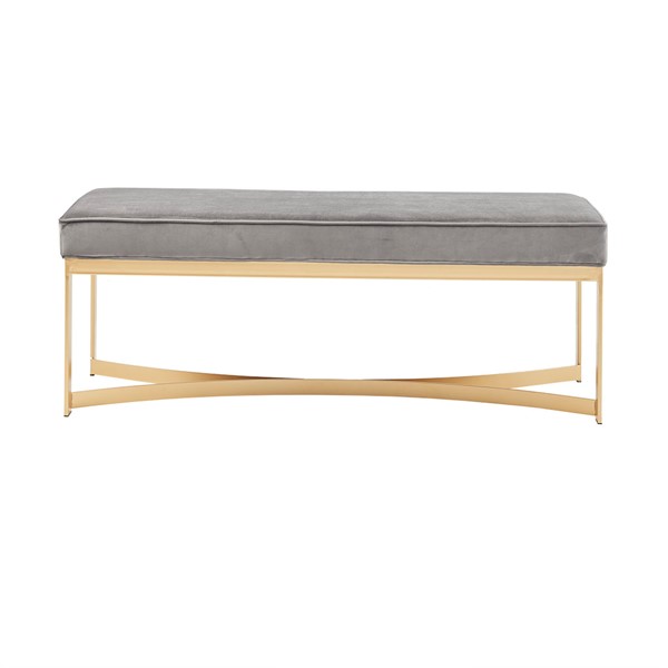 Update your home decor with the sleek style of the Martha Stewart Secor Bench. This accent bench features a grey upholstered seat with a gold metal base that creates a chic modern look. Place this bench in your entryway, bedroom, or living room to give your home decor a contemporary touch. Leg assembly required.