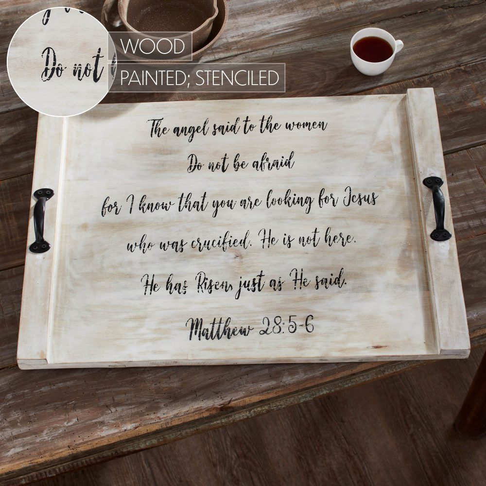 Introducing the VHC Brands Matthew 28 Noodle Board, a divine addition to your kitchen or dining room decor. This beautifully painted, rectangular board measures 21.5x29.5, featuring an inspiring verse from Matthew 28:5-6. Crafted as part of the Risen Collection, this noodle board in Pelican Tan embodies elegance and religious significance. The text of Matthew 28 adorns this board, enhancing its aesthetic appeal and spiritual resonance. Enhance your culinary space with this versatile noodle board, serving both functional and decorative purposes. Its ample size provides an ideal surface for food prep or presentation, elevating your kitchen experience. The religious motif, coupled with its sturdy construction, transforms this board into a cherished piece within your home, bringing together faith and functionality seamlessly. Imbued with profound meaning and crafted with attention to detail, the VHC Brands Matthew 28 Noodle Board is a testament to both artistry and spiritual reflection. Enliven your kitchen or dining area with this exquisite piece, its painted design and inspirational verse serving as a daily reminder of faith and grace, enriching your home environment with both beauty and purpose.