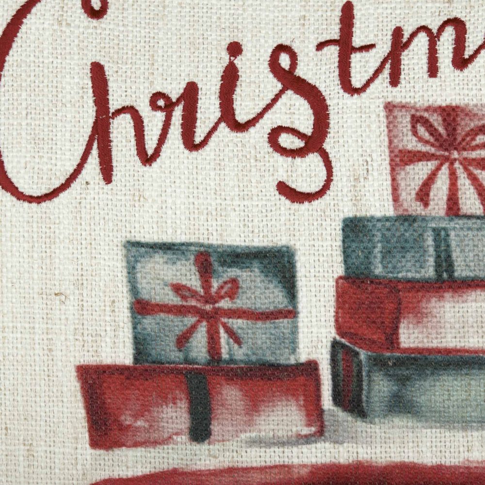 Enjoy an old-fashioned farmhouse Christmas this year with the Merry Christmas Truck Pillow. This 18"x18" fanciful throw pillow features a red vintage Christmas truck in purposely faded digital print. The bold red of the handwritten style "Merry Christmas" combined with the red pom pom lace add a touch of elegance to this holiday pillow. Place our unique decorative pillow in the bedroom or living room this holiday season. Machine washable and iron safe.