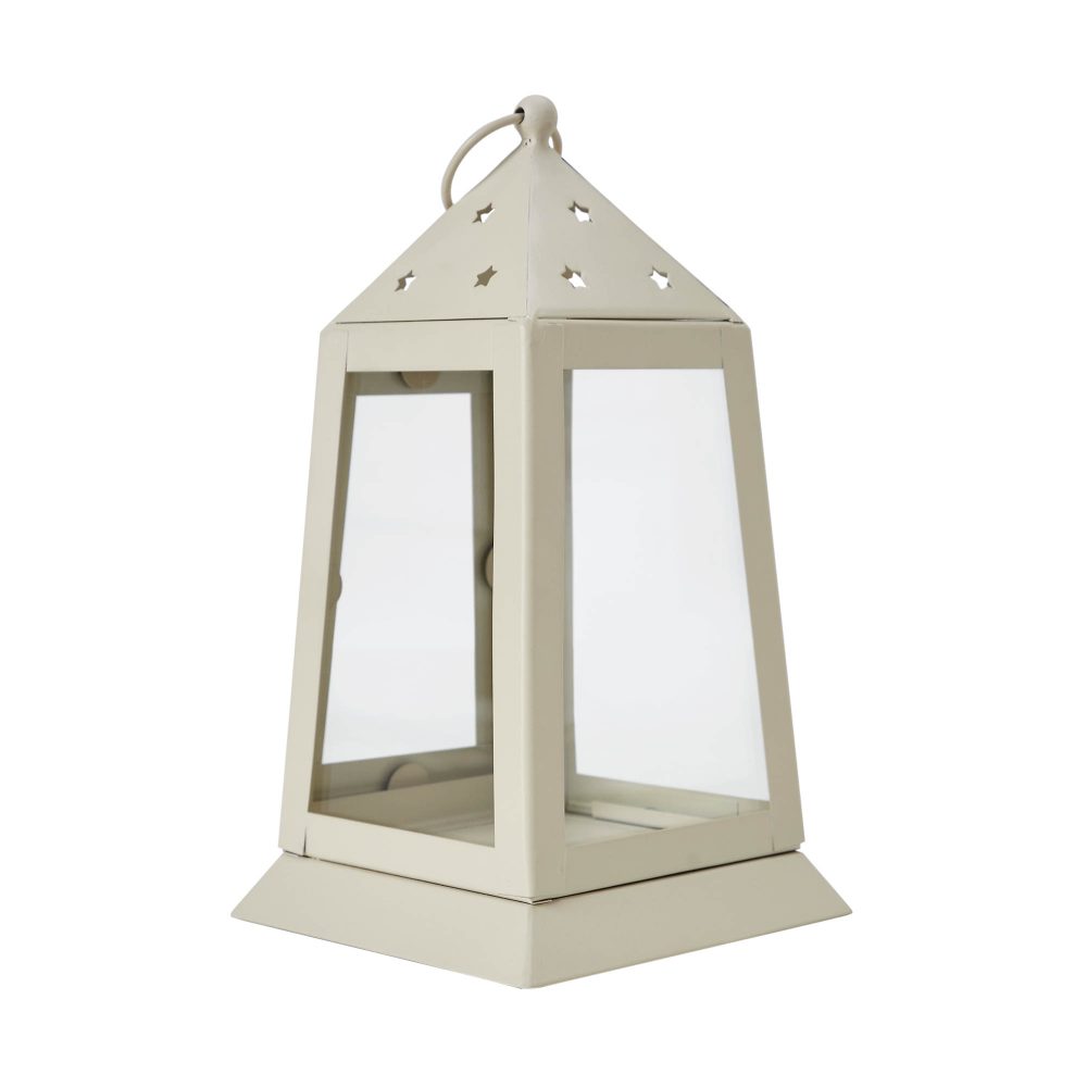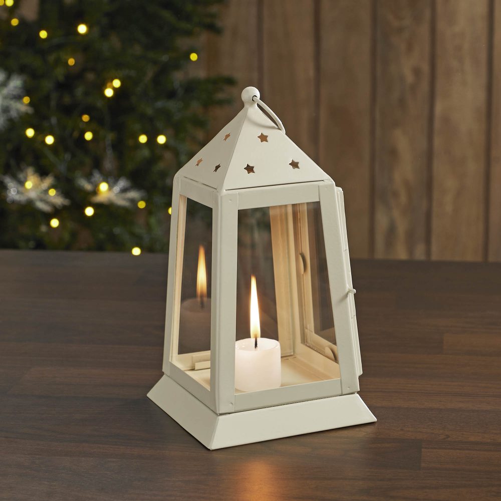 • Add a touch of vintage charm to your home decor with our Metal Lantern Tealight Holder in antique white, featuring exquisite glass windows and star cutouts that create a mesmerizing display of light and shadow in your dining room, entryway, or living room.