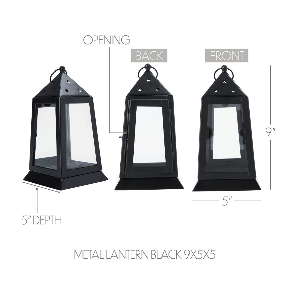 Illuminate your home with the rustic charm of the VHC Brands Metal Lantern Tealight Holder in Country Black. Crafted from sturdy metal and glass, this lantern features a timeless design with glass windows and star cutouts, adding a touch of countryside allure to your decor. Measuring 9x5x5 inches, it's the perfect size for tabletop display in your kitchen, dining room, entryway, or living room, casting a warm and inviting glow that enhances the ambiance of any space. The classic country black finish of this lantern exudes primitive and rustic appeal, infusing your home with cozy charm and character. Its solid color effortlessly complements a variety of decor styles, from farmhouse to cottage chic, making it a versatile addition to any room. To maintain its pristine appearance, simply wipe the lantern clean with a soft cloth as needed, ensuring it remains a focal point of your home decor for years to come. For safe use, it's important to adhere to the cautionary guidelines, refraining from touching or moving the holder while warm or when a candle is lit. Keep the lantern out of reach of children and away from flammable objects to prevent accidents. Embrace the inviting ambiance of the VHC Brands Metal Lantern Tealight Holder in Country Black, and let its gentle glow enhance the cozy atmosphere of your living space.