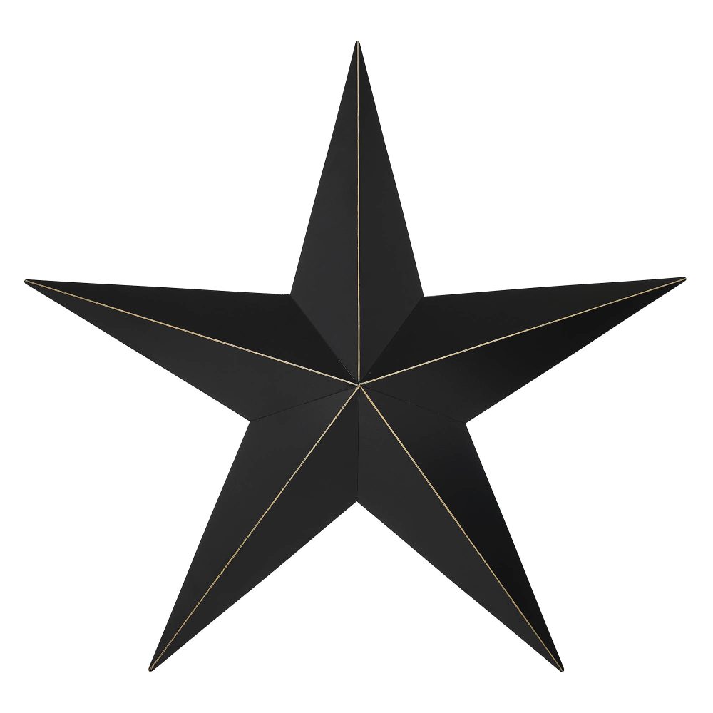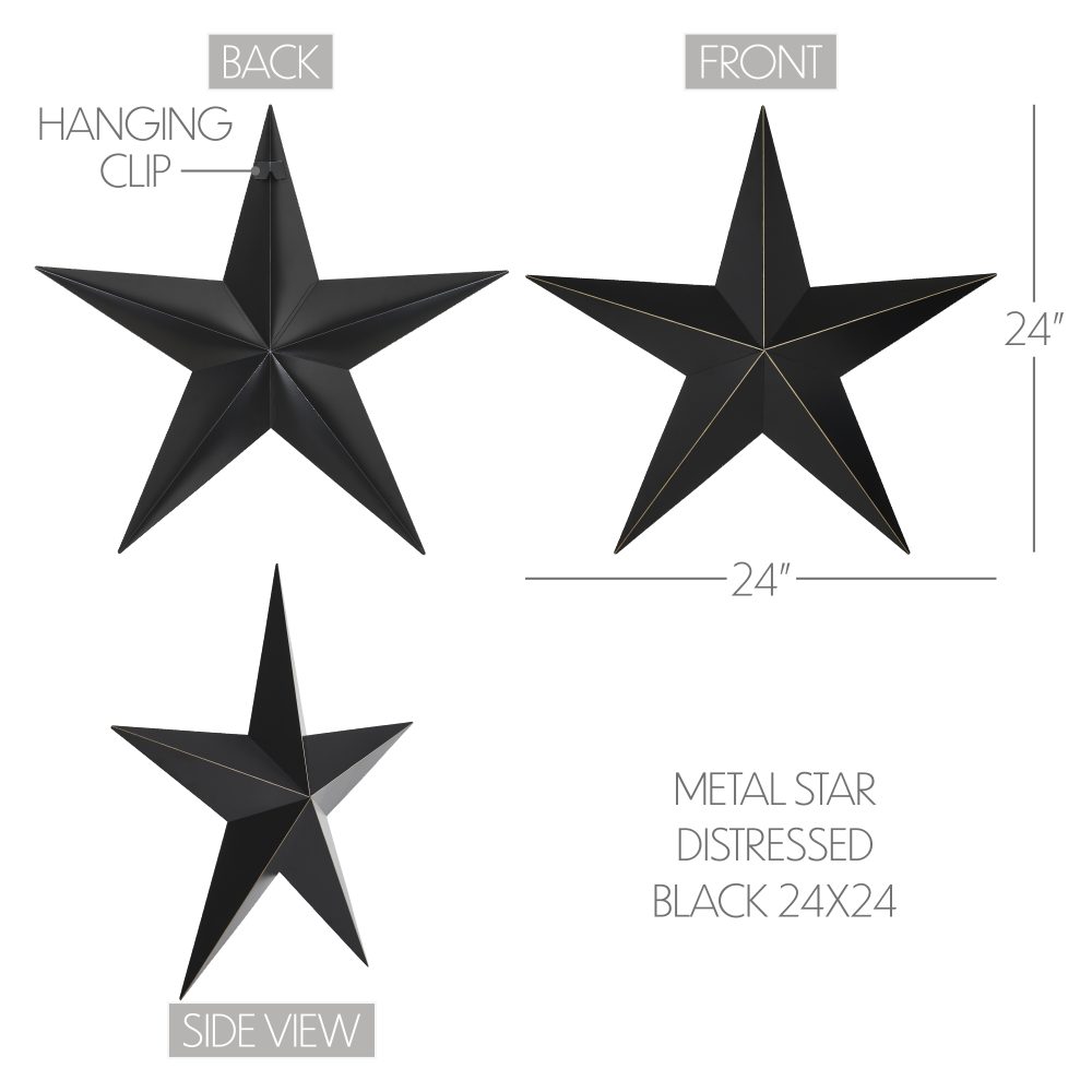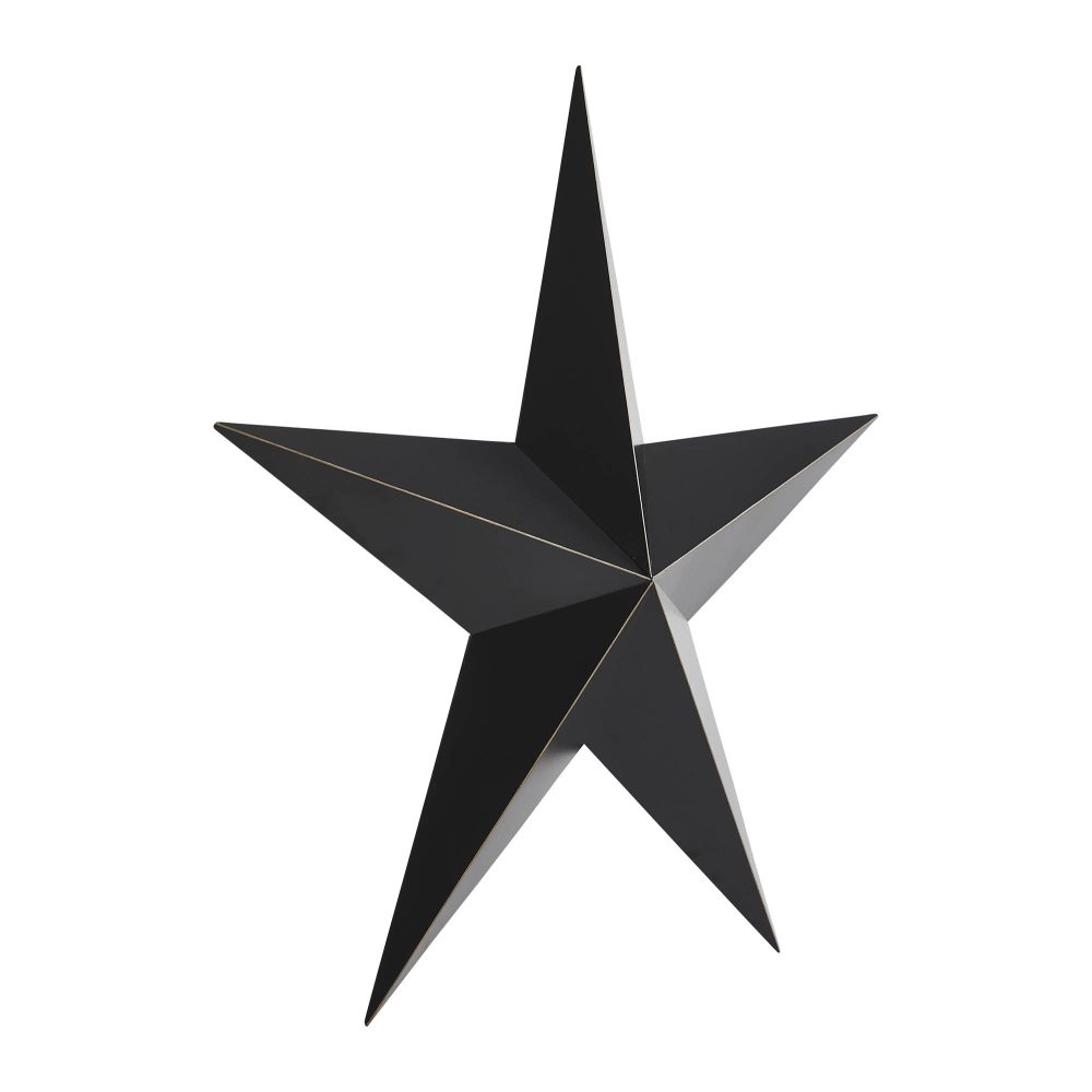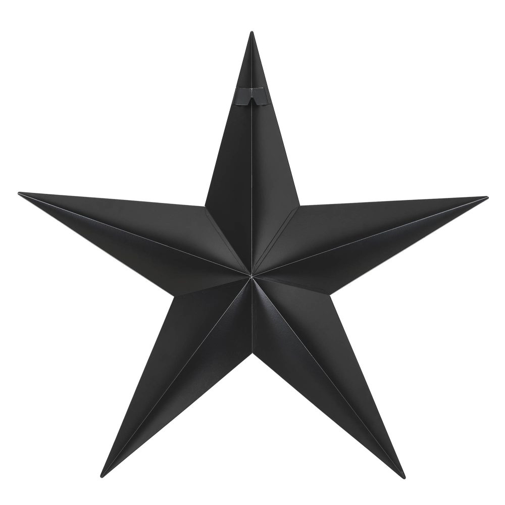 Add a bold yet refined statement to your decor with the VHC Brands Patriotic Metal Star, a striking 24x24 decorative wall hanging that combines rustic charm with timeless elegance. This faceted five-point star is crafted from durable metal, featuring a country black finish with vintage tan distressing along the ridges for a beautifully aged, weathered appearance. Its convenient hanging clip at the back ensures easy placement, making it a versatile accent piece for any space. Ideal for larger rooms or open spaces, this decorative star complements a variety of interiors, from rustic farmhouse to country-inspired decor. Perfect for the living room, dining room, kitchen, bedroom, bathroom, or entryway, it adds a touch of Americana to your home while maintaining a sophisticated aesthetic. Designed for indoor display, it can also be used outdoors with the application of a protective sealant, making it a stylish addition to porches or garden walls. Maintaining the VHC Brands Patriotic Metal Star is effortless-simply wipe it clean with a soft cloth to preserve its distressed finish. Its larger size and bold design make it a stunning focal point, whether displayed as a standalone feature or as part of a gallery wall. Whether you're celebrating Independence Day or enhancing your everyday decor, this decorative metal star offers enduring craftsmanship and rustic appeal.