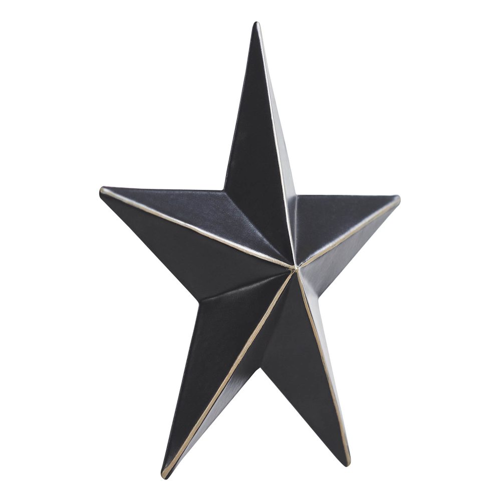 Add a charming accent to your home with the VHC Brands Patriotic Metal Star, a petite 4x4 decorative wall hanging that combines rustic character with timeless elegance. This faceted five-point star is crafted from durable metal and finished in country black, accented with vintage tan distressing along the ridges for a beautifully weathered look. Its compact size and intricate details make it an ideal addition to small spaces or as part of a larger decorative arrangement. Perfect for a variety of indoor settings, this versatile star enhances the decor of bathrooms, bedrooms, dining rooms, kitchens, entryways, and living rooms. Its neutral color palette complements farmhouse, rustic, and country-inspired interiors, adding a subtle touch of Americana. For outdoor display, simply apply a protective sealant to preserve its finish and charm in porches or garden areas. Maintaining the VHC Brands Patriotic Metal Star is simple-just wipe it clean with a soft cloth to keep it looking its best. Its small size allows for easy placement, whether used as a standalone accent or incorporated into a gallery wall. Whether celebrating patriotic pride or enhancing your everyday decor, this decorative metal star brings enduring charm and quality craftsmanship to your space.
