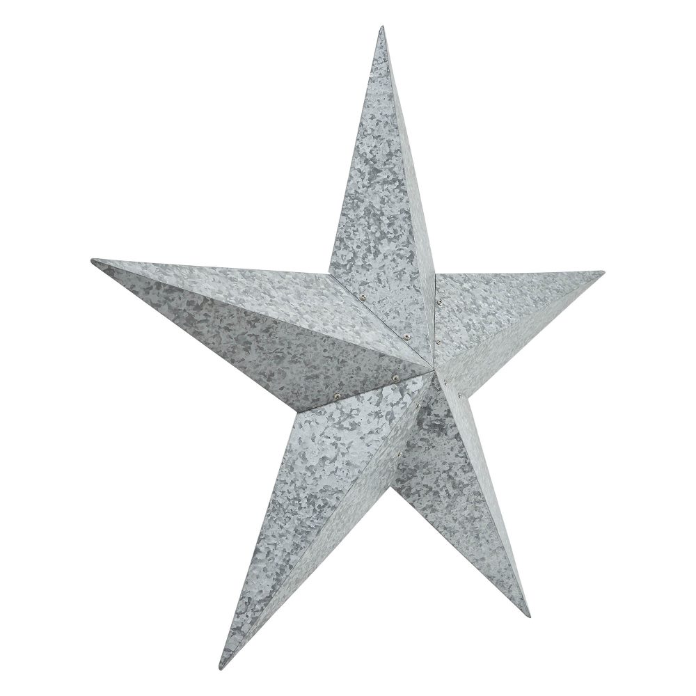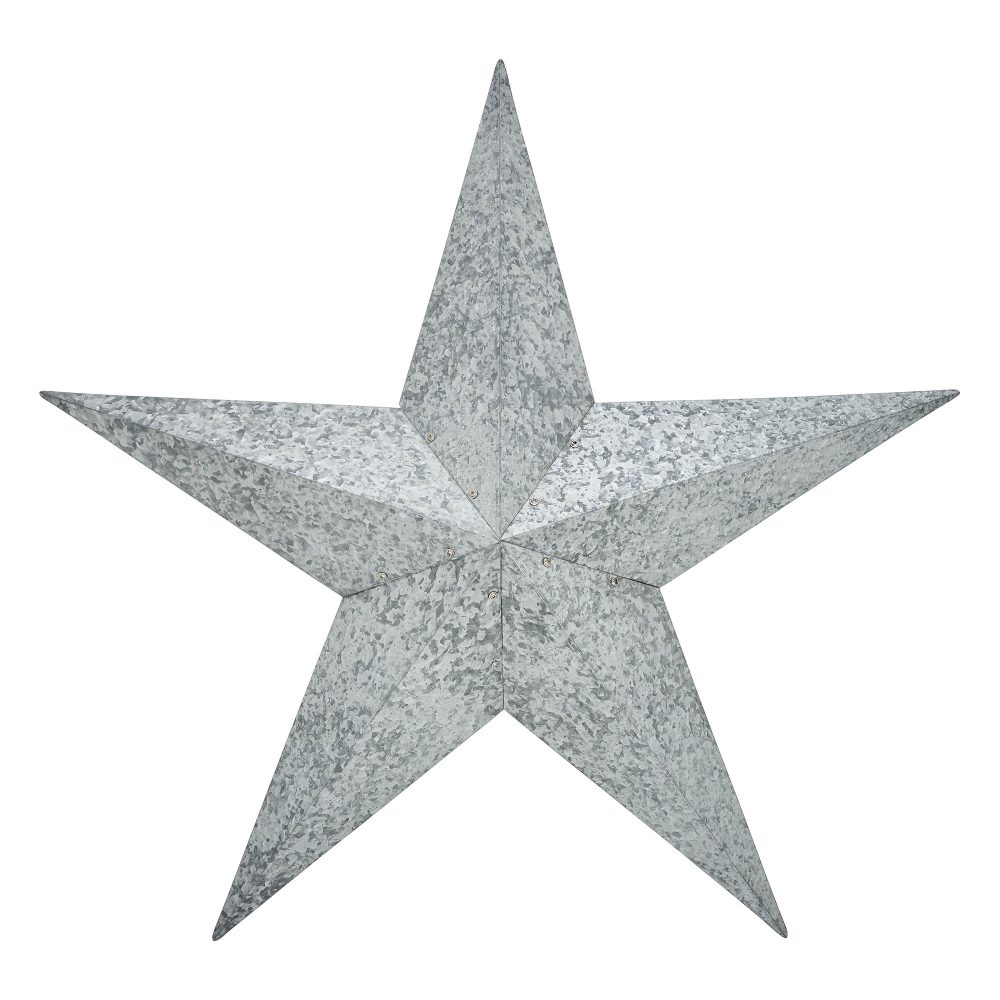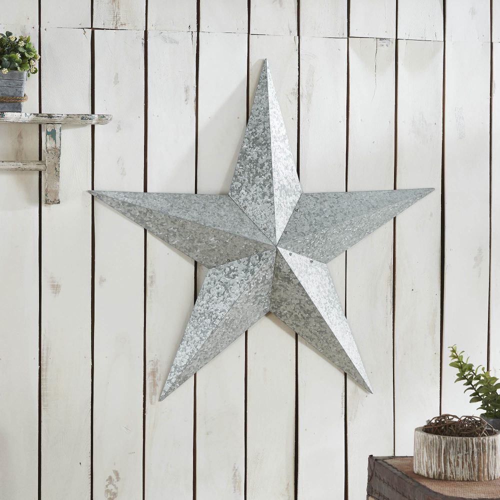 Make a bold statement with the VHC Brands Patriotic Metal Star Galvanized 36x36, a striking oversized wall hanging that brings rustic charm and timeless appeal to your home. This faceted five-point star is crafted from durable metal with a sleek galvanized grey finish, creating a stylish yet weathered look that complements a variety of decor styles. A convenient hanging clip on the back ensures easy installation, making it a stunning centerpiece for your Independence Day celebrations or year-round farmhouse decor. Designed for larger spaces, this decorative star enhances the ambiance of living rooms, dining rooms, kitchens, bedrooms, bathrooms, or entryways. Its galvanized grey finish pairs perfectly with rustic, country, and farmhouse-inspired interiors, adding depth and character to your space. For outdoor display, applying a protective sealant will help maintain its finish and durability, making it an eye-catching addition to porches or patios. Assembly is required for this grand piece, with each arm carefully wrapped for protection during shipping and all hardware included for a hassle-free setup. Maintaining the VHC Brands Patriotic Metal Star is simple-just wipe it clean with a soft cloth to preserve its sleek appearance. Whether displayed as a dramatic focal point or incorporated into a larger decorative arrangement, this oversized metal star combines quality craftsmanship and rustic sophistication to elevate your home decor.