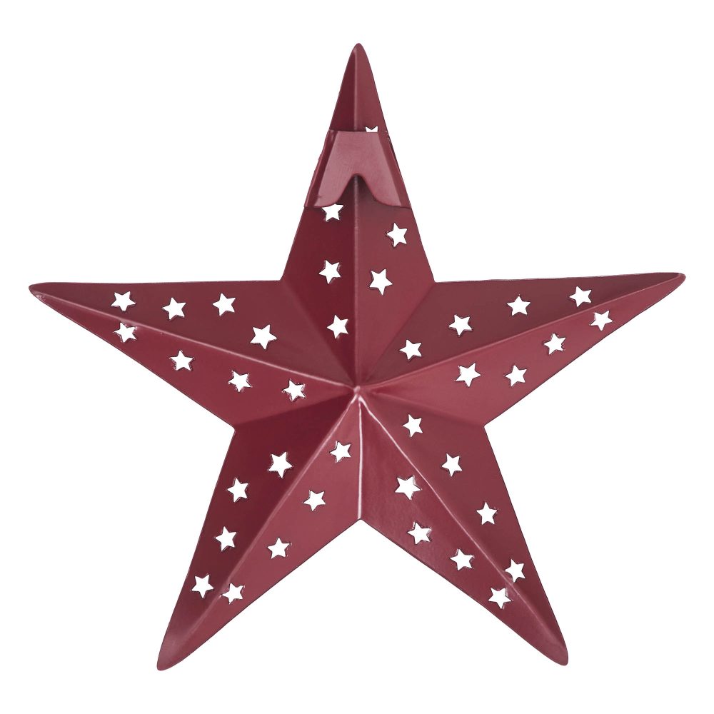 - Distinctive 5-Point Star Design: Features a deep burgundy star with scattered multi-sized punched stars, creating a unique see-through effect that enhances its rustic charm.