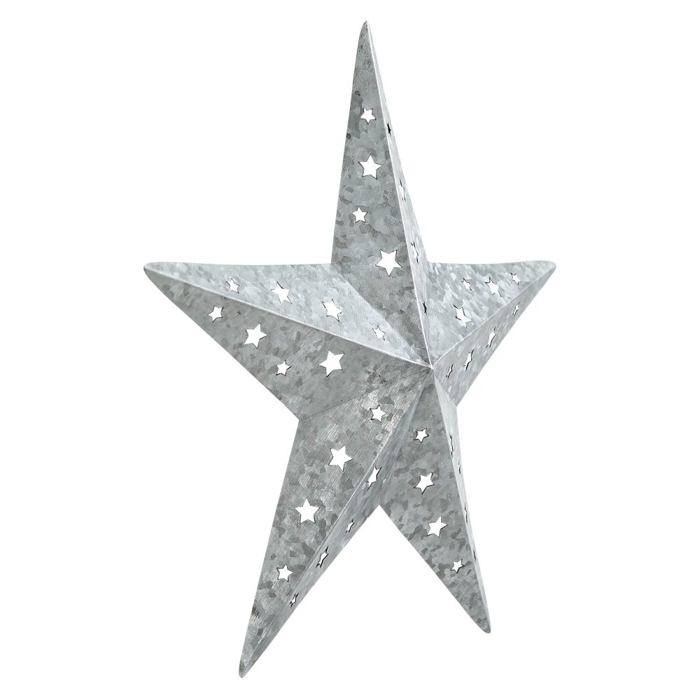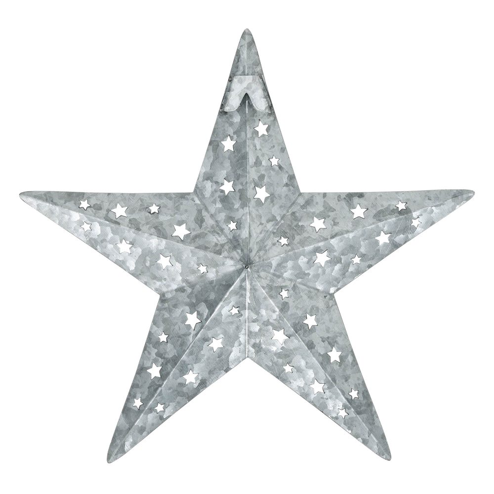 - Rustic 5-Point Star Design: Features a galvanized 12×12 star with scattered multi-sized punched stars, offering a unique see-through effect perfect for farmhouse decor.