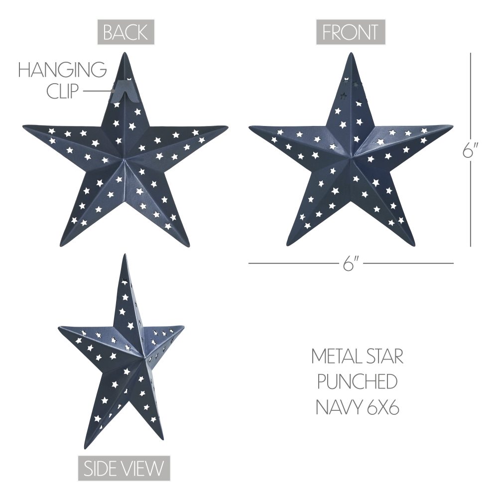 - Charming 5-Point Star Design: Features a navy blue star with scattered multi-sized punched stars, adding a unique, rustic see-through effect.