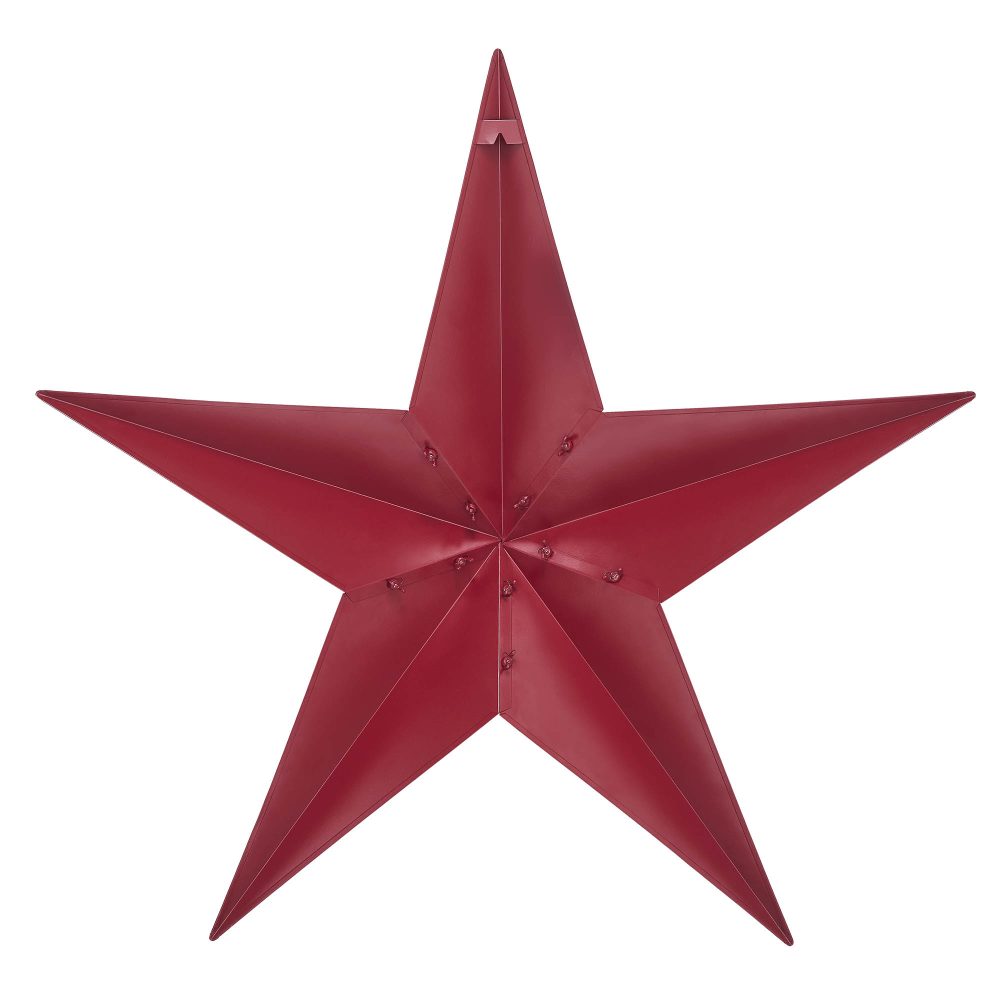 Make a bold statement in your home with the VHC Brands Patriotic Metal Star Speckled Distressed 36x36, an oversized decorative wall hanging that exudes rustic charm and timeless appeal. This faceted five-point star is crafted from durable metal and features a striking burgundy finish with black speckles and distressing along the ridges, creating a beautifully weathered, vintage-inspired look. The convenient hanging clip at the back ensures secure and easy placement, while its substantial size makes it a captivating focal point. Perfect for larger spaces, this versatile star enhances the rustic elegance of living rooms, dining rooms, kitchens, bedrooms, bathrooms, or entryways. The bold country black and vintage tan color palette blends seamlessly with farmhouse, rustic, and country-inspired interiors, adding depth and warmth to your decor. Designed for indoor display, the star can also be showcased outdoors with the application of a protective sealant, making it a stunning feature on porches or patios. Assembly is required for this grand piece, with each arm carefully wrapped for protection during shipping and all necessary hardware included for easy setup. Maintaining the VHC Brands Patriotic Metal Star is effortless-simply wipe it clean with a soft cloth to preserve its distressed and speckled finish. Whether displayed as a dramatic centerpiece or incorporated into a larger decorative arrangement, this metal star delivers enduring quality, rustic sophistication, and timeless design to elevate your home.