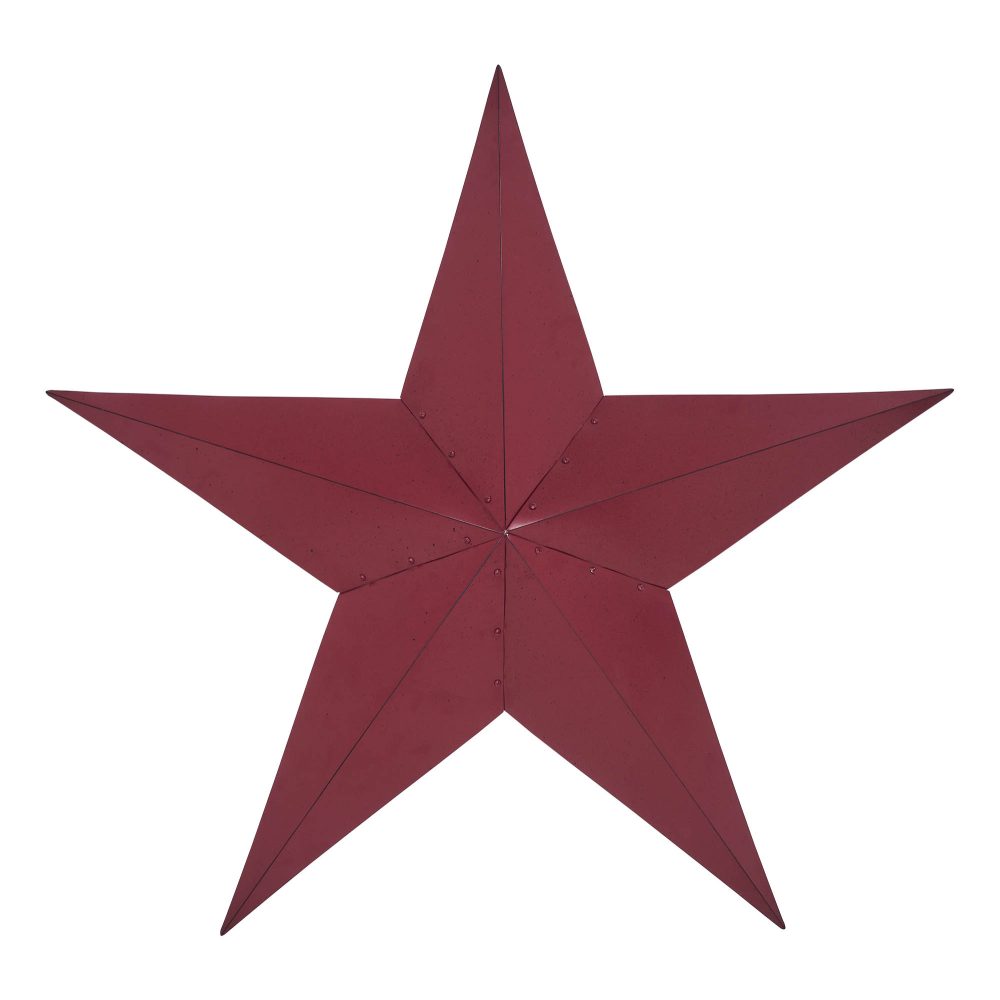 Make a bold statement in your home with the VHC Brands Patriotic Metal Star Speckled Distressed 48x48, a stunning oversized wall hanging that exudes rustic charm and timeless elegance. This faceted five-point star is crafted from durable metal and features a rich burgundy finish with black speckles and distressing along the ridges, creating a beautifully weathered and vintage-inspired look. The star's grand size and dramatic design make it a captivating focal point, while the convenient hanging clip ensures secure and effortless placement. Perfect for larger spaces, this decorative star enhances the charm of living rooms, dining rooms, kitchens, bedrooms, bathrooms, or entryways. Its bold burgundy and black color palette complements rustic, farmhouse, and country-inspired interiors, making it an excellent choice for seasonal Independence Day decor or year-round sophistication. For outdoor use, applying a protective sealant helps maintain its distressed finish, making it a standout feature for porches or patios. Assembly is required for this impressive piece, with each arm carefully wrapped for protection during shipping and all hardware included for a seamless setup. Maintaining the VHC Brands Patriotic Metal Star is easy-just wipe it clean with a soft cloth to preserve its speckled and distressed appearance. Whether showcased as a dramatic centerpiece or incorporated into a larger decorative arrangement, this oversized metal star combines quality craftsmanship and rustic sophistication to elevate your home decor.