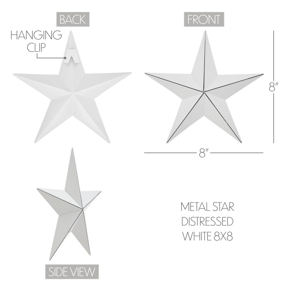 - Charming 5-Point Star Design: 8×8 faceted metal star in bright white with black distressing, perfect for adding a rustic farmhouse accent to your space.