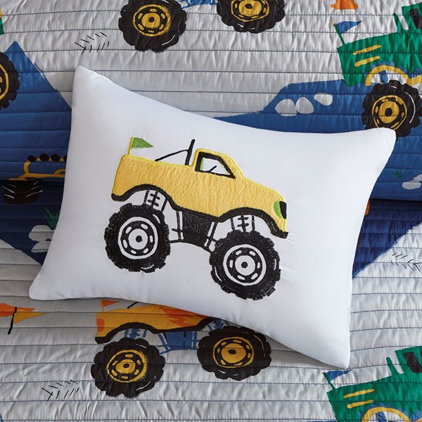 10 reviews for Mi Zone Kids Nash Monster Truck Reversible Quilt Set with Throw Pillow in Blue, Full/Queen MZK13-167