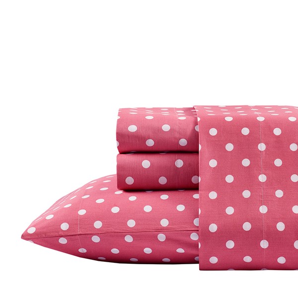 Mi Zone Polka Dot Printed 100% Cotton Sheet Set in Dark Pink, Full MZ20-500