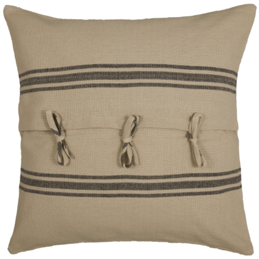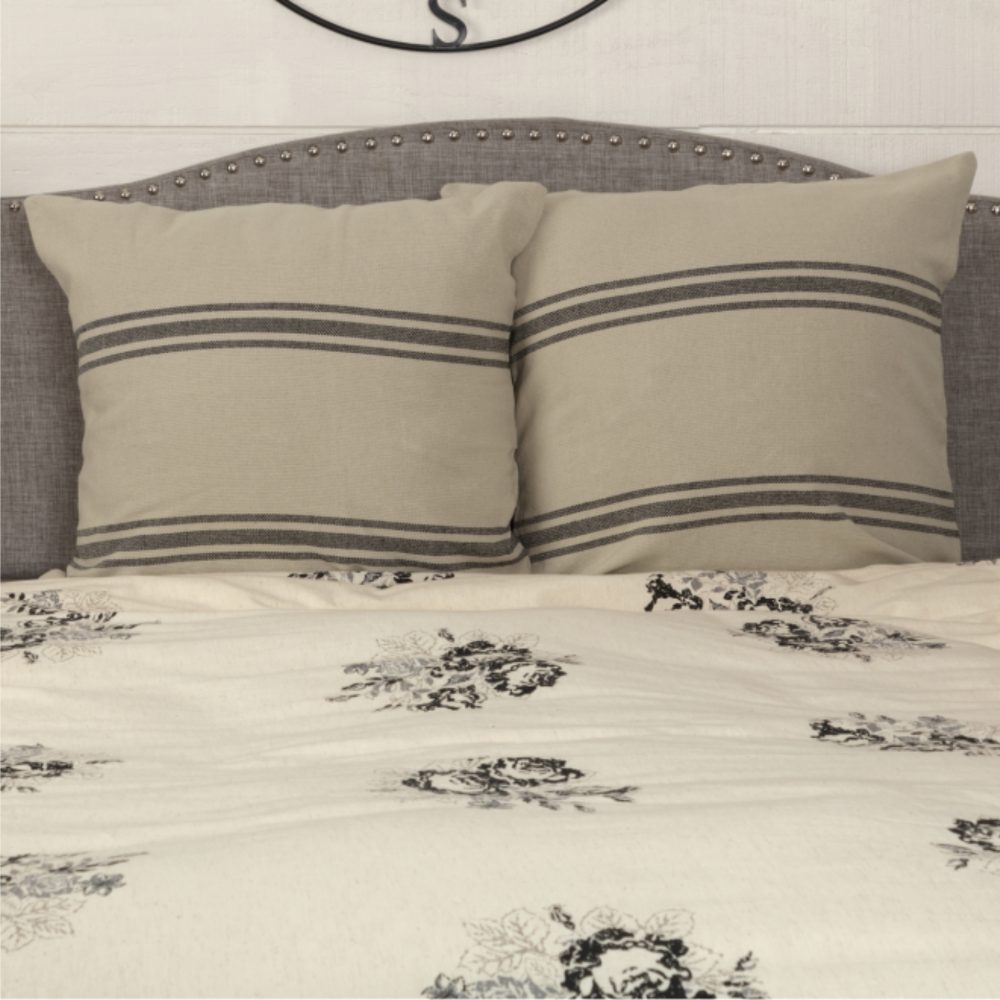 The Mill House Collection brings old-fashioned cottage charm to your farmhouse with the simplicity of homespun fabric and timeless grain sack stripes. The heavy-weave material features a rustic texture that softens every setting, adding warmth along with an easy-going, casual style. The neutral background is cool and collected, allowing the soft black stripes to round out the look with a balanced, repetitive design. The charming, unsophisticated style of our original Mill House Collection is sure to strike a chord with farmhouse enthusiasts everywhere! The pillow sham brings simplicity and soft style to your bedding ensemble with wonderful, rich texture and two sets of grain sack stripes. Featuring a single-layer cotton fabric, the sham reverses to the same stripe design and has fabric ties to keep your pillow securely in place. The accent has a contrasting top-stitch that finishes the look with a relaxed, rustic touch.