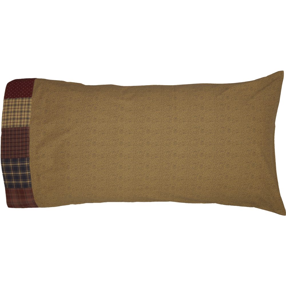 Transform your plain pillows by using our Millsboro King Pillow Case Set to add a soft vintage look to your bedding. With a 4-inch patchwork edge of navy, burgundy, and tan plaid blocks on a ditsy print fabric base in navy and tan, these 21x40 pillowcases bring relaxed, homespun charm to your lodge, lake house, or cabin-style bedroom. Made from 100% cotton, these pillow covers offer old-fashioned style and modern convenience.