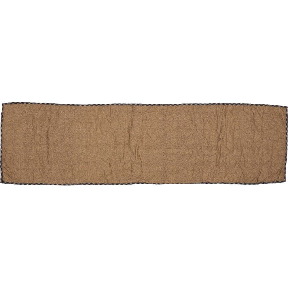 Create a warm, cozy table for friends and family to gather round with a traditional quilted design. The Millsboro Log Cabin Block Quilted Runner includes one table runner measuring 13x48 inches. The rich texture and straight edging of the cotton fabric is given a timeless feel with a traditional log cabin quilt design and warm shades of navy, burgundy and tan forming a mix of tartan plaid patterns. Complete your tabletop decor with other pieces from the Millsboro Collection by VHC for modern primitive country style.