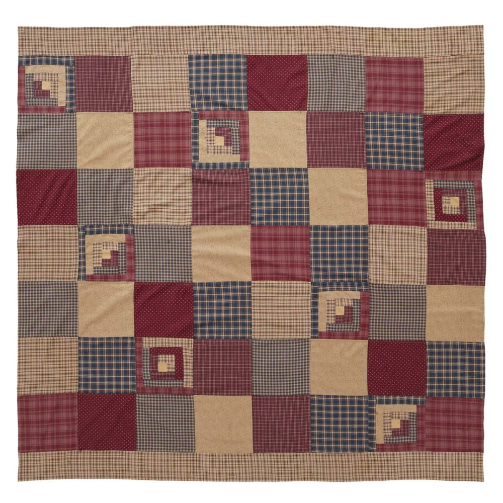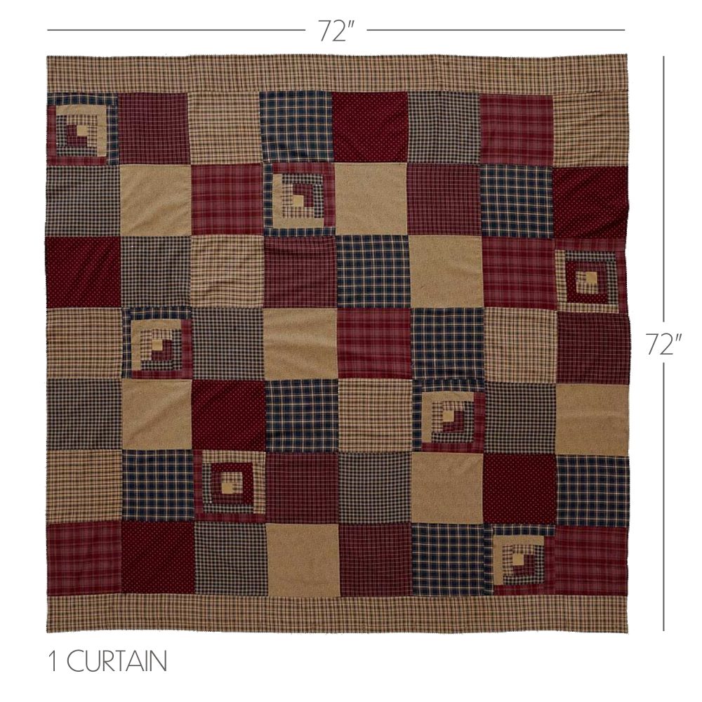 Decorate your bathroom with the perfect blend of deep primitive color and rustic country charm with the Millsboro Shower Curtain. Featuring a patchwork of plaids and checks with a sprinkle of more detailed log cabin style blocks, our 72x72 fabric shower curtain provides a rustic country touch to your bathroom decor. The mix of burgundy red, khaki tan and navy blue plaid make this shower curtain feel like a vintage scrappy quilt. This machine washable, 100% cotton shower curtain includes button holes for shower hooks and a rod pocket for versatility and convenience.