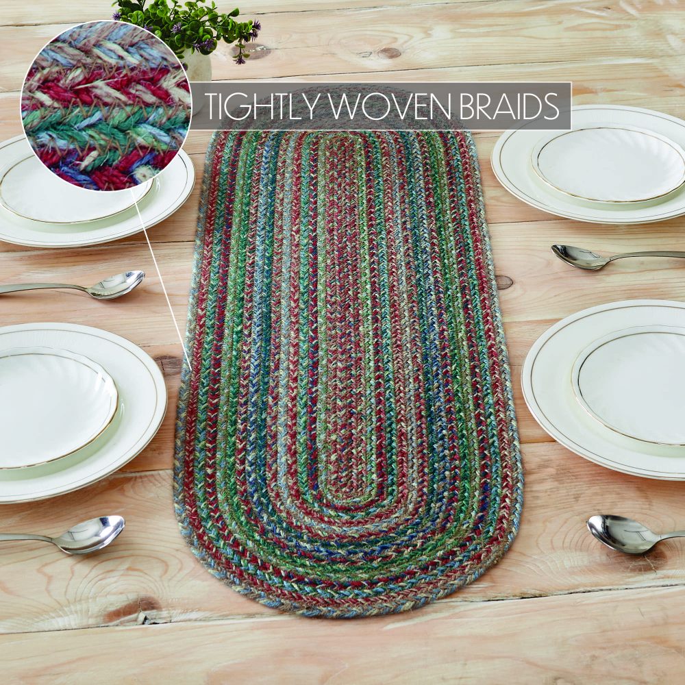 Create a joyful table for friends and family to gather round with modern color and classic texture. The Multi Jute Table Runner includes an individual table covering measuring 12x36 inches made from a premium Jute blend. The rich texture of braided jute is given a modern twist with soft blue, natural tan, forest green, and garnet red tones for a bold country boho style. Complete your tabletop decor with other pieces from the Multi Jute Collection by VHC for modern farmhouse style.