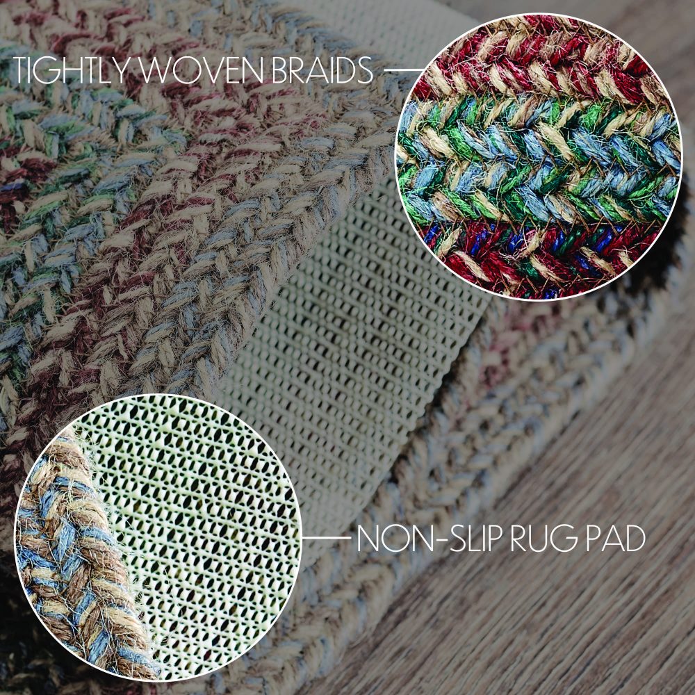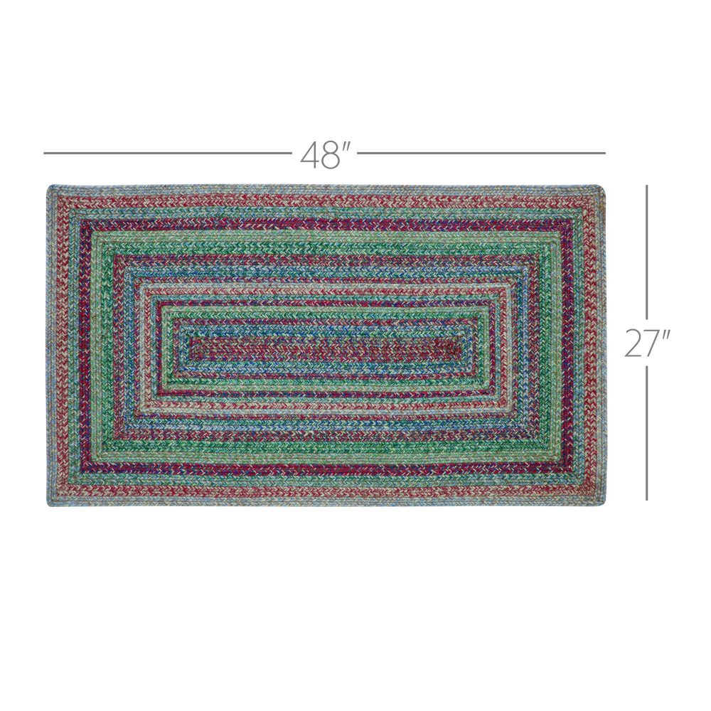 Create a bright, colorful look for your home with bold shades of blue, green, and red in a curl-resistant jute blend that adds style and safety. The Multi Jute Rug measures 27x48 inches and features a classic rectangle shape and tight braids constructed with a durable jute blend. The special blend relaxes faster and stays flat. The included PVC mat makes sure your beautifully braided jute rug stays exactly where it should. Features a blend of bold blue tones, forest greens, garnet red and natural tan for a joyful, country boho look that complements a wide array of modern and rustic farmhouse decor.