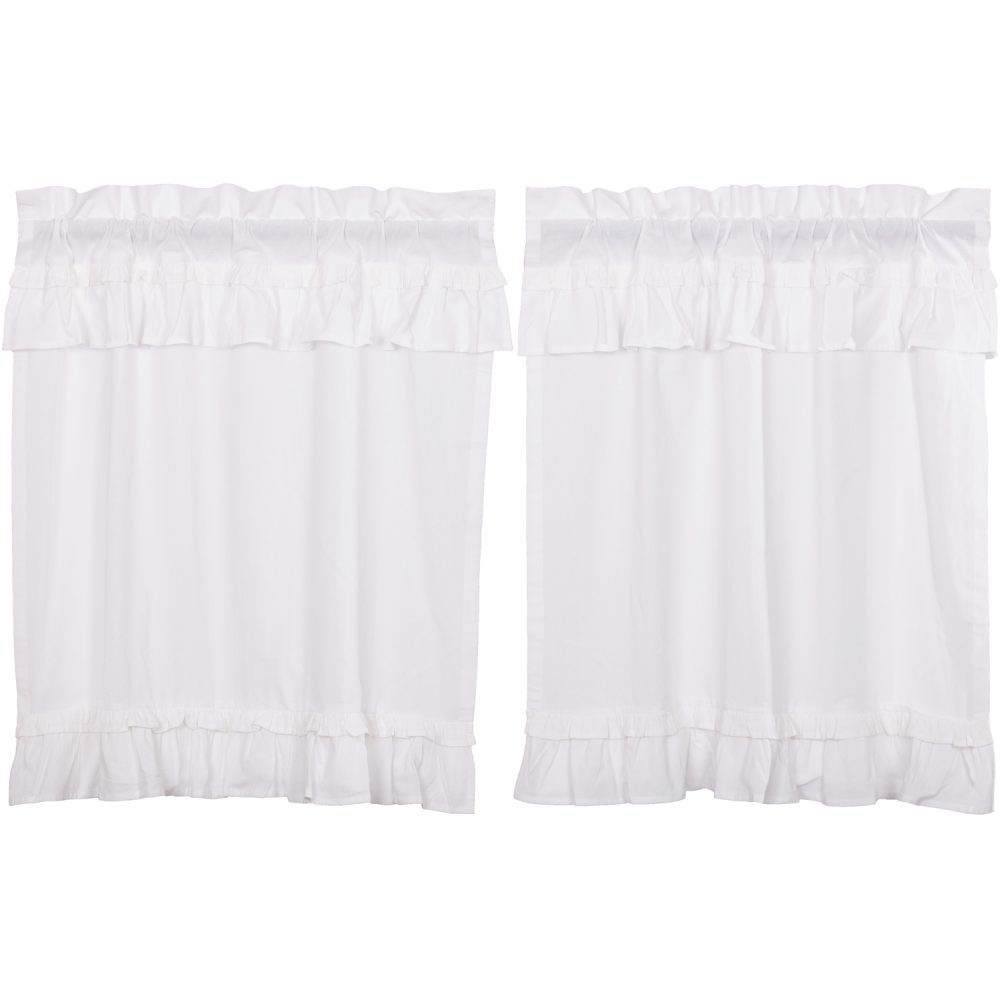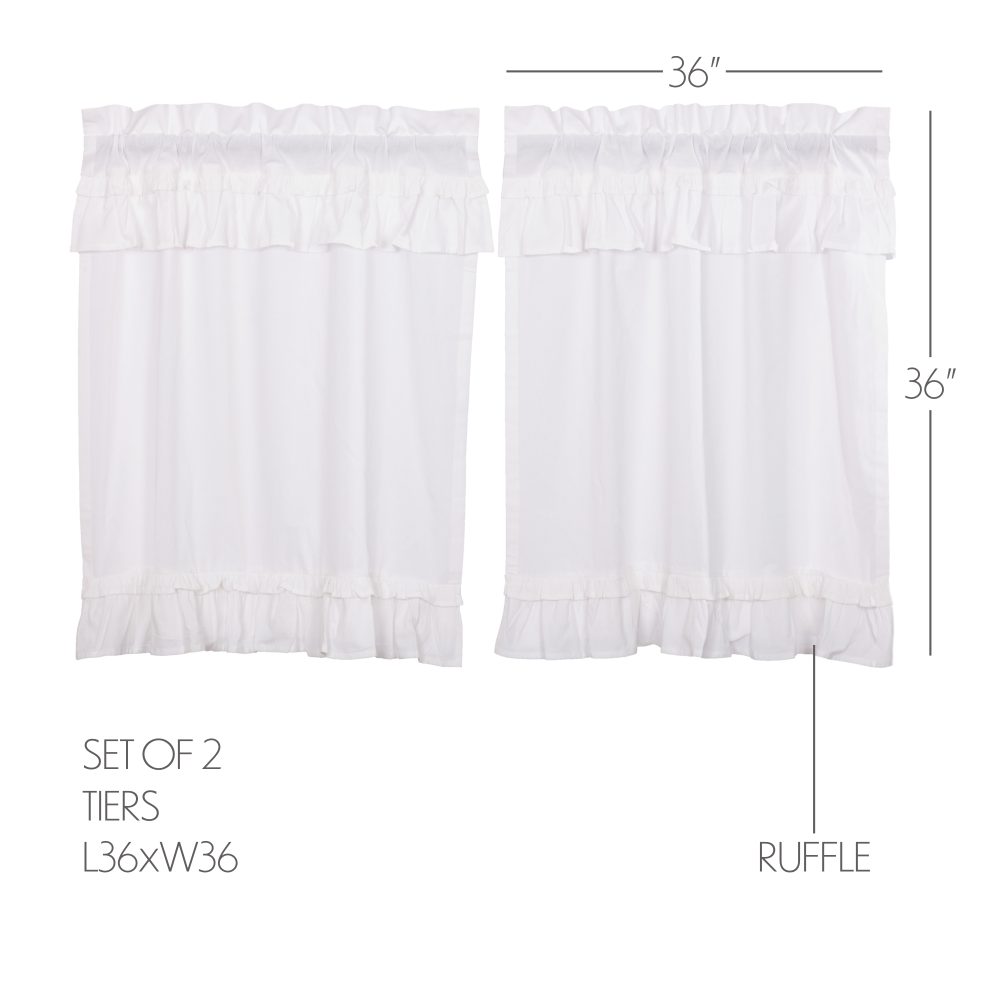 One of the first cotton cloths that textile makers learned to make, our Muslin Ruffled Bleached White Tier Curtain Set takes this long-used fabric and updates it with ruffling for a modern farmhouse look. Unlined and semi-sheer, these 100% muslin cotton tiers float over your window with contemporary vintage appeal. Place these L36xW36 soft white curtains in your bedroom, dining room, living room, kitchen, or any room that needs a little country romance. It includes a rod pocket for easy hanging.
