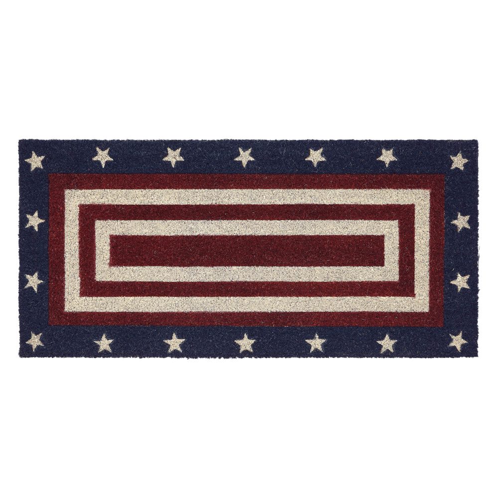 - Americana Elegance: Welcome guests with patriotic pride using the VHC Brands Coir Welcome Door Mat from the My Country Collection, featuring a charming stars and stripes design in rich Merlot, adding a touch of country Americana to your entrance.